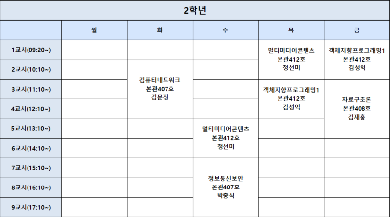 시간표는 커리큘럼에 맞춘 가이드일 뿐 학생 개인의 선택이 가능합니다.