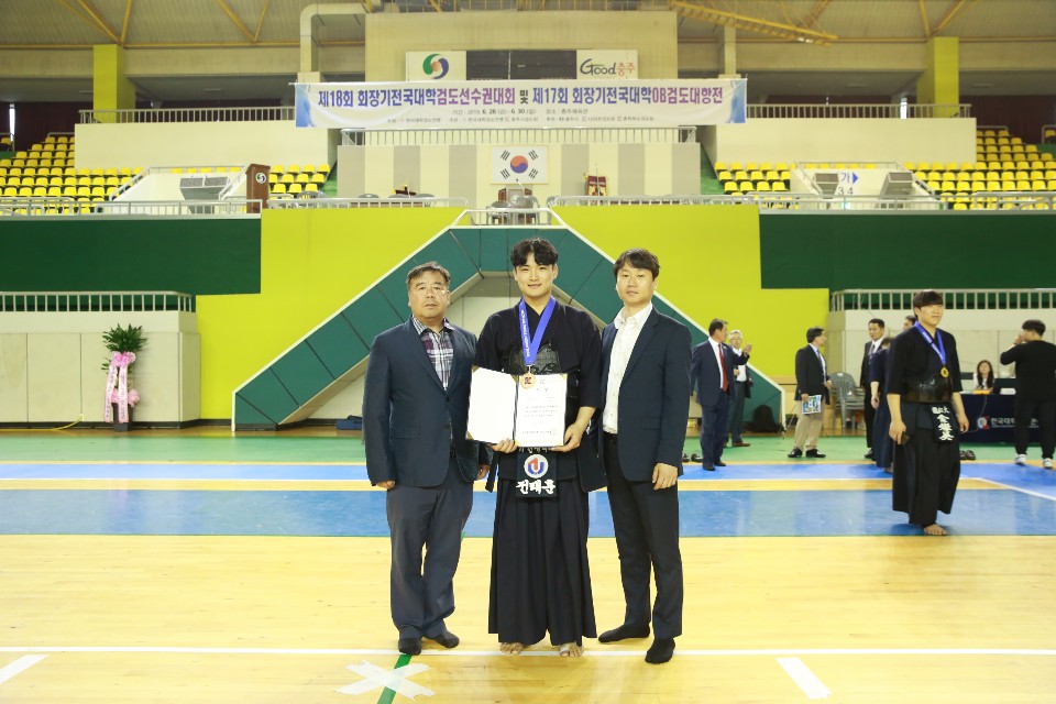 지난 2019년6월28일~30일에 열린 제18회 회장기 전국대학 검도 선수권대회에서 단체전 준우승, 남자 개인전3위(전태훈)를 차지하였습니다.
