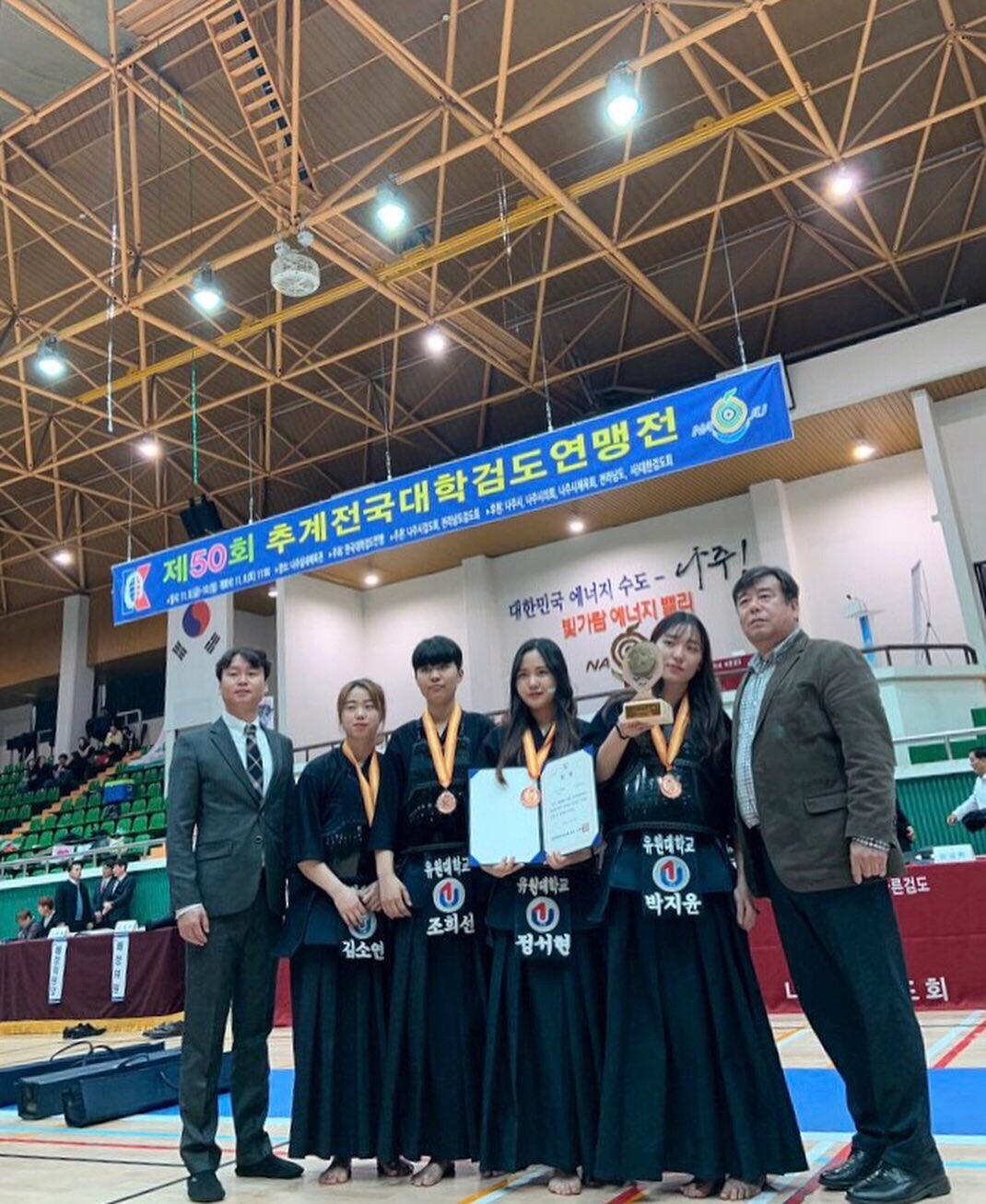 전남 나주실내체육관에서 2019.11.08(금) ~ 11.10(일) 열린 제50회 추계 전국대학검도연맹전에서 홍명기(2학년)학생이 저학년부 우승을하였고 여자1부 단체전 정서현(2학년), 김소연,조희선,박지윤(이상1학년)이 출전해 3위를 하였습니다.